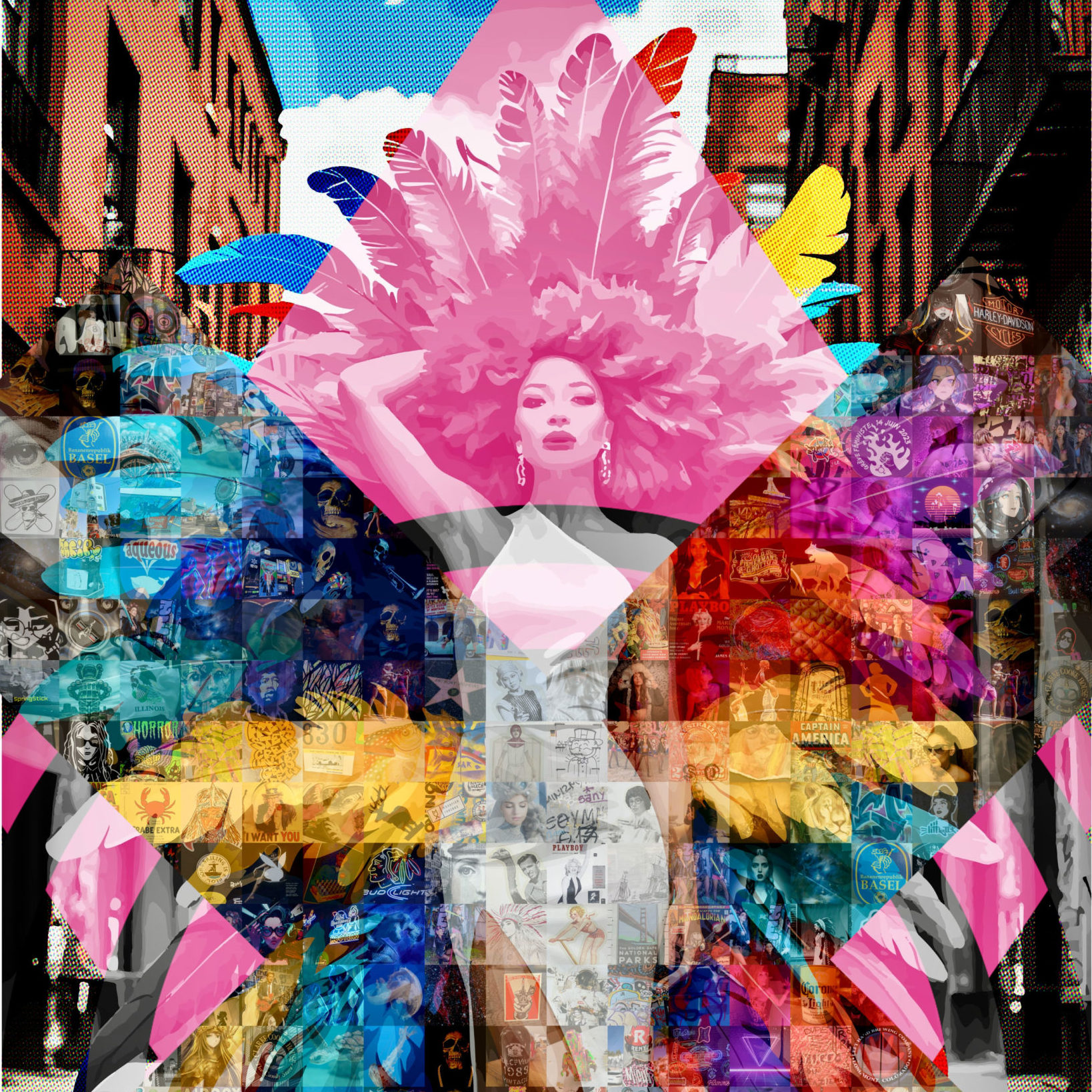 Artist Saro offers a live collage approach that provides an immersive and dynamic artistic experience. Whether at a festival, in a gallery, at a party or a unique event, this practice allows for the creation of a work that is revealed little by little. As the process unfolds, the initial chaos gradually transforms into a harmonious composition that progressively reveals the final vision on a canvas or wall. Click to find out more…